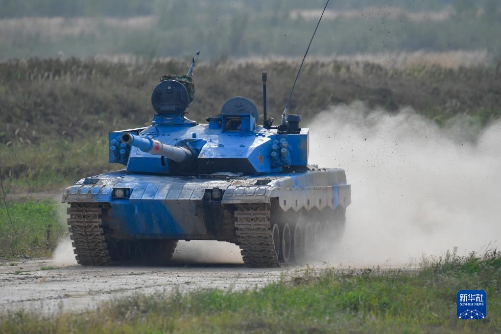 8月27日,在俄羅斯莫斯科州阿拉比諾靶場(chǎng),中國(guó)參賽隊(duì)96B坦克在比賽中。