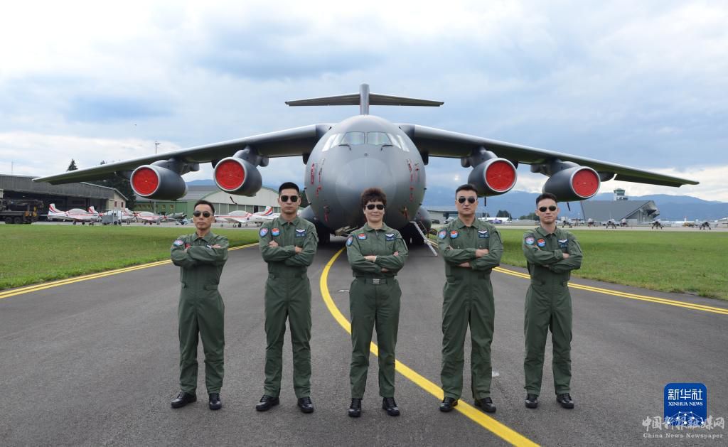 9月1日,在奧地利采爾特韋格機(jī)場,中國空軍運(yùn)-20機(jī)組人員在運(yùn)-20前合影。新華社發(fā)(馮振 攝)
