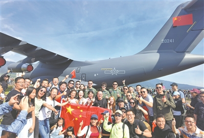 “‘鯤鵬’亮相歐洲,更加感受到五星紅旗的力量。”參展任務(wù)指揮員劉文力介紹,這兩天,運-20展區(qū)總是被觀眾圍得水泄不通,當(dāng)?shù)厝A人華僑紛紛帶著五星紅旗前來觀展,表達(dá)愛國之情。在社交媒體上,運-20照片刷屏,被譽為“可親可愛的和平之鷹”。