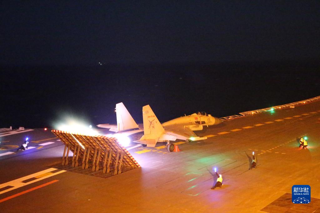 遼寧艦組織夜間放飛殲-15艦載戰(zhàn)斗機(資料照片)。新華社發(fā)
