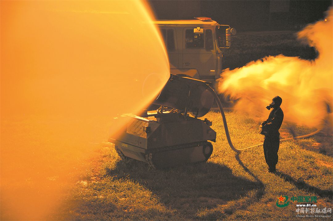 戰(zhàn)略支援部隊(duì)某大隊(duì)官兵參加應(yīng)急處突訓(xùn)練。白文智 攝