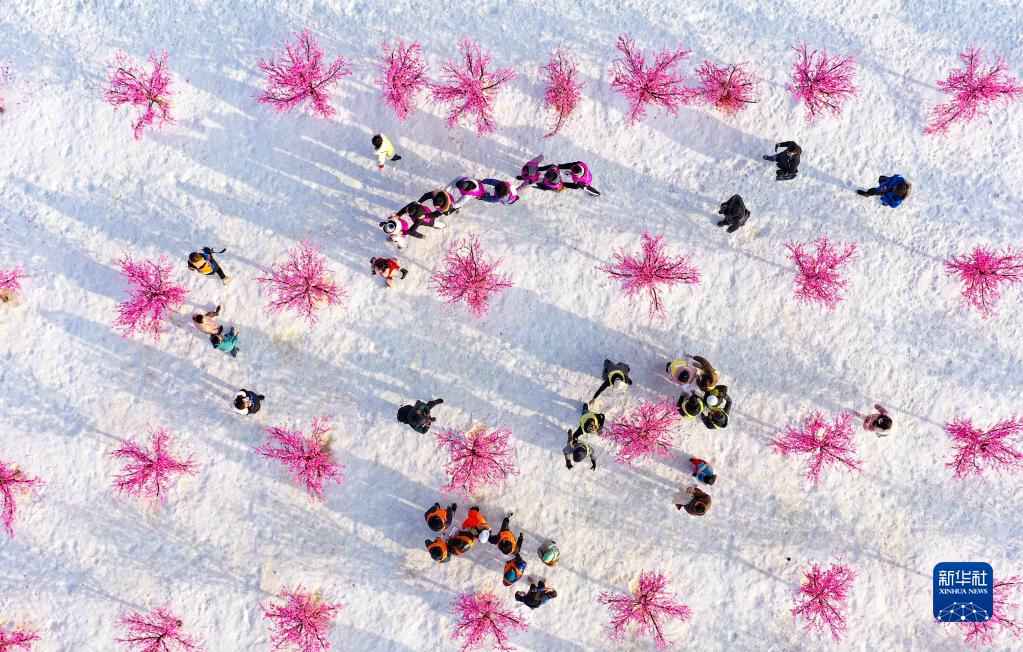 1月10日,寧夏醫(yī)科大學的留學生在稻漁空間參加雪地跑比賽(無人機照片)。當日,寧夏醫(yī)科大學的27名留學生在老師的陪同下,來到銀川市賀蘭