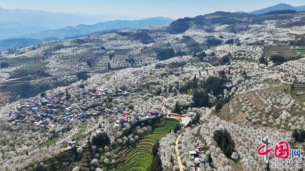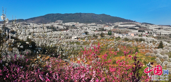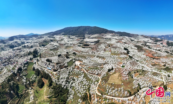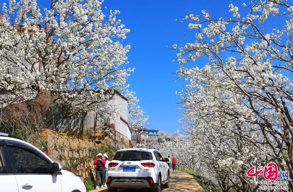 梨花遜雪三分白,雪輸梨花一段香。近日,云南省紅河哈尼族彝族自治州個舊市畢業(yè)紅村加級寨萬畝魯沙梨進(jìn)入盛花期,引得來自各地的大批游客前來賞花。