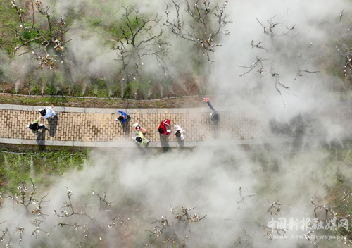 1500畝梨花正翹首枝頭迎風(fēng)綻放。(羅盟攝)