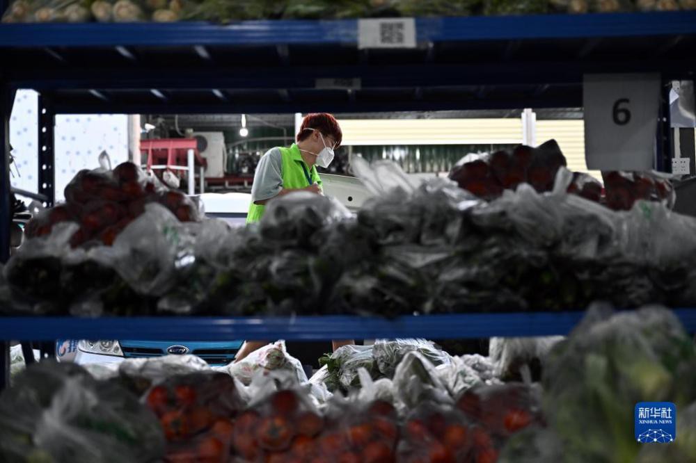 8月14日,吳凡力(左二)、張海洋在為市民配送生活物資。新華社記者 郭程 攝 8月14日,吳凡力(左)幫助市民訂菜。新華社記者 郭程 攝