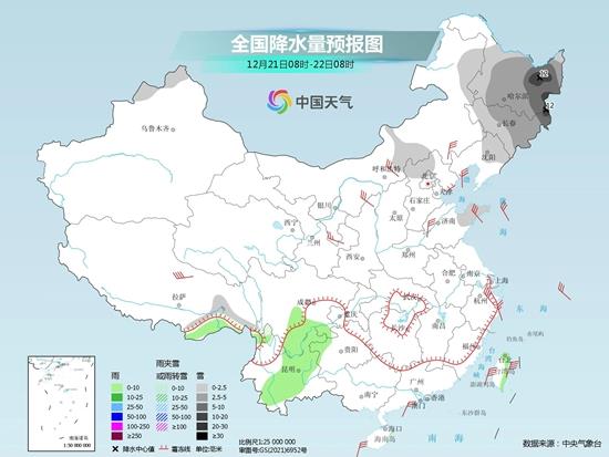 明天(21日),新疆北疆北部、內蒙古東北部、東北地區(qū)大部、山東半島等地的部分地區(qū)有小到中雪,其中,黑龍江東部、吉林東部等地的部分地區(qū)有大到暴雪。西藏東南部、四川盆地南部、貴州西部、云南中東部和西南部、臺灣島等地的部分地區(qū)有小雨。