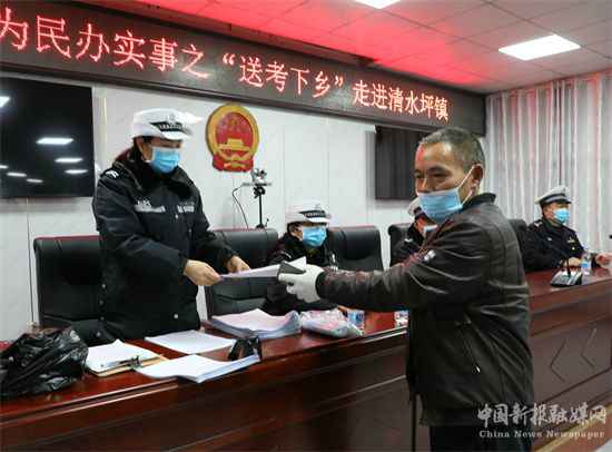 12月31日,湖南省保靖縣公安局交警大隊(duì)的民警在清水坪鎮(zhèn)集中辦理摩托車駕駛證考試。近年來(lái),該縣交警部門將考場(chǎng)搬到百姓家門口,把摩托車駕駛證申考業(yè)務(wù)延伸到農(nóng)村,解決鄉(xiāng)村群眾到縣城考試路途遠(yuǎn)、考試難等問(wèn)題,讓車主在家門口就能拿到摩托車駕駛證。(俞采華  彭  博)