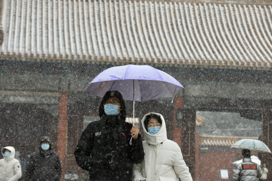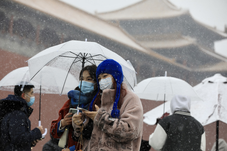 中國(guó)日?qǐng)?bào)北京3月18日電(記者姜東 朱興鑫 王敬)2022年3月18日,北京迎來(lái)降雪天氣,游客冒雪在故宮、頤和園等景點(diǎn)欣賞雪景。當(dāng)日上午,北京市氣象臺(tái)發(fā)布暴雪藍(lán)色預(yù)警。