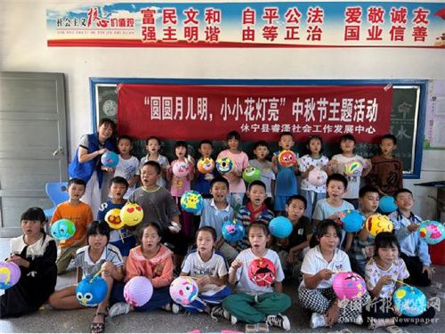 為弘揚(yáng)中華民族的優(yōu)秀傳統(tǒng)文化,增添節(jié)日歡樂氣氛,豐富校園節(jié)日文化內(nèi)涵,讓孩子們感受到社會(huì)各界的溫暖。9月6日下午,休寧縣睿澤社會(huì)工作發(fā)展中心的社工們來到藍(lán)田中心小學(xué)開展了“圓圓月兒明,小小花燈亮”中秋節(jié)主題活動(dòng),與孩子們一起制作團(tuán)圓燈籠,迎接中秋節(jié)的到來。