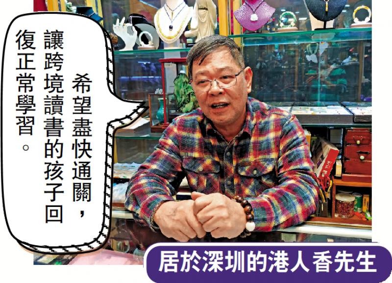 圖:居于深圳的港人香先生希望盡快通關(guān),讓跨境讀書的孩子回復(fù)正常學(xué)習(xí)。