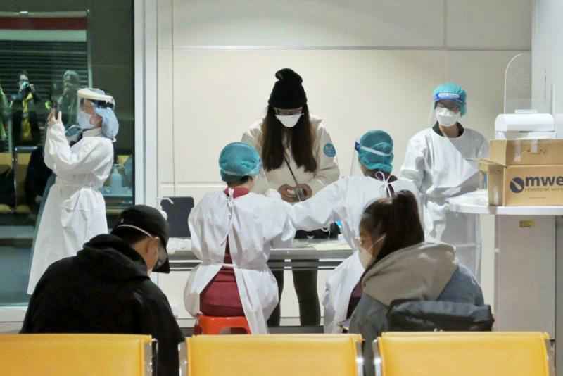 圖:由于桃園機(jī)場(chǎng)疫情擴(kuò)大,臺(tái)當(dāng)局加強(qiáng)對(duì)入境旅客進(jìn)行檢測(cè)。\中央社