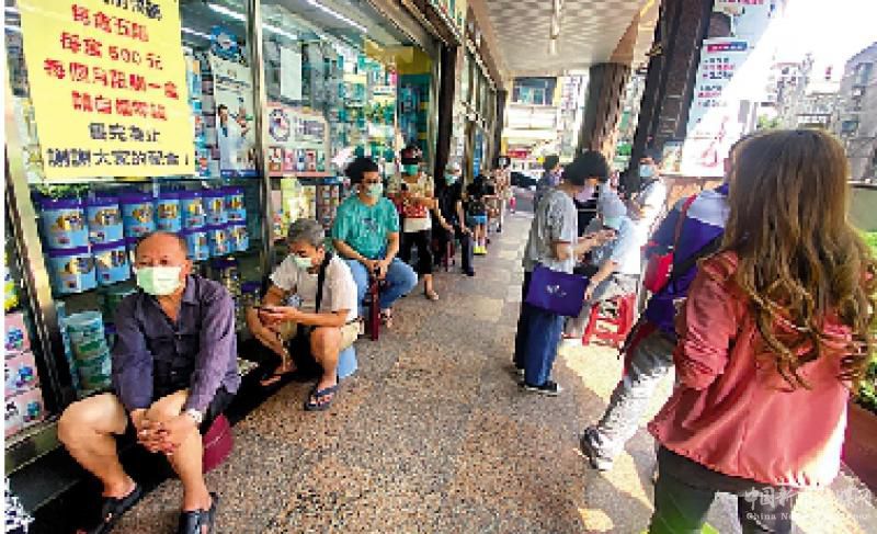 圖:島內(nèi)快測包緊缺,不少藥店門口一早就出現(xiàn)排隊人龍。/資料圖片
