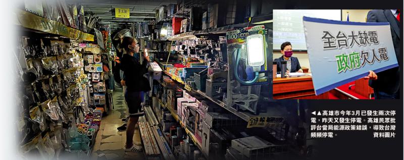 圖:高雄市今年3月已發(fā)生兩次停電,昨天又發(fā)生停電。高雄民眾批評臺當(dāng)局能源政策錯誤,導(dǎo)致臺灣頻頻停電。\資料圖片