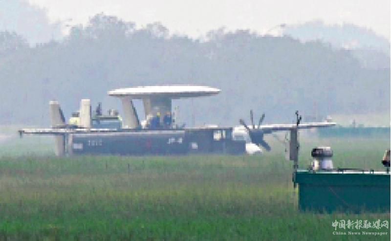圖:11月25日,臺軍E-2K預警機機腹著地沖出跑道。\資料圖片