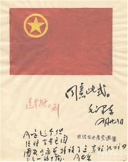 (1950年4月28日,毛澤東、劉少奇、周恩來(lái)等同志對(duì)備選的團(tuán)旗圖案做出批示。)