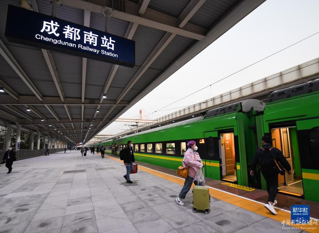 12月26日,在成都南站,乘客登上新成昆鐵路首發(fā)列車。