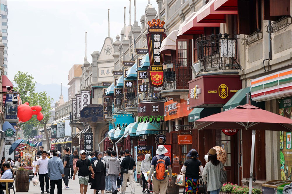 游人在煙臺市朝陽街游玩(2023年6月12日攝)。新華社記者 朱崢 攝