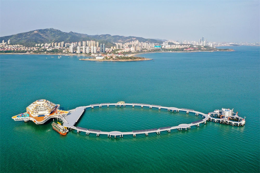 迎著夏日海風(fēng),記者乘船登上這塊深海“寶石”。這是融合海洋漁業(yè)、海工裝備、海洋文旅、科普教育、影視娛樂等功能于一體的“海上綜合體”。河北游客陳家棟海上垂釣之后,還參觀了海洋科普館,體驗深海電梯。他說:“這里的項目特色鮮明,比城里的綜合體更有趣。”