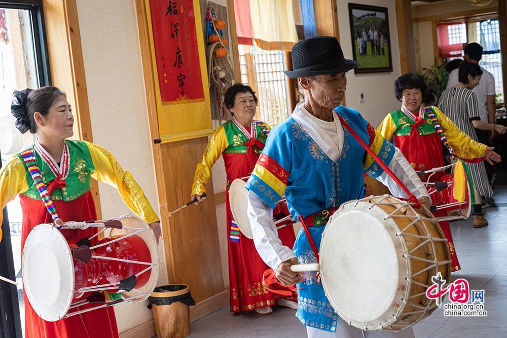 光東村村民為游客表演朝鮮族特色歌舞。中國(guó)網(wǎng)記者 倫曉璇 攝