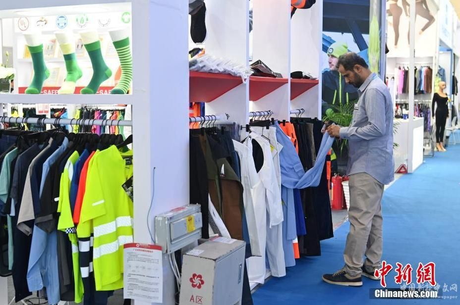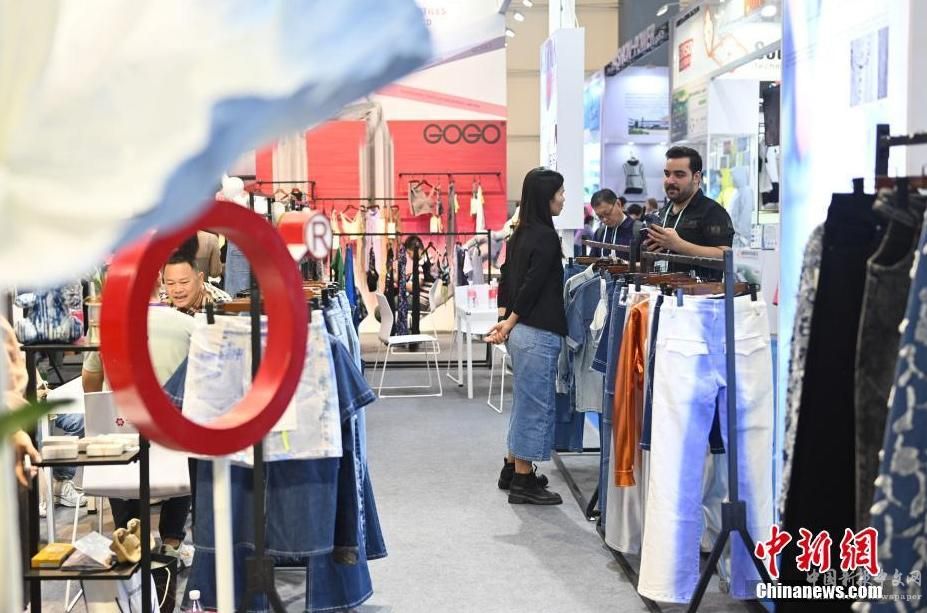11月2日,廣東省廣州市,第134屆中國(guó)進(jìn)出口商品交易會(huì)(廣交會(huì))第三期的服裝展區(qū)吸引境外采購(gòu)商逛展體驗(yàn)。中新社記者 陳楚紅 攝