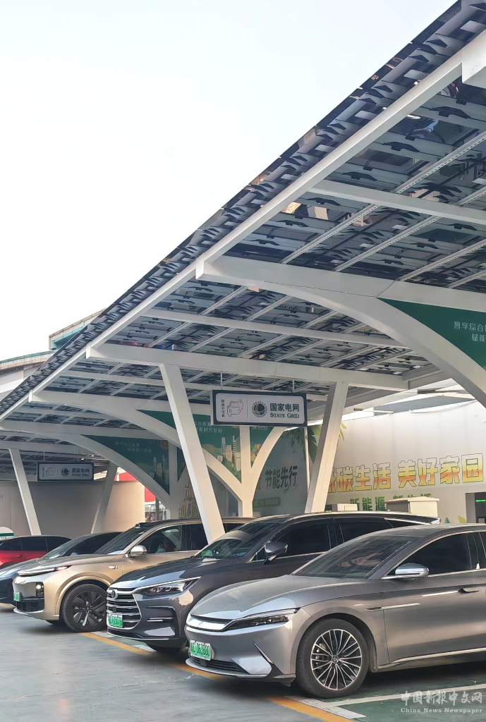 全新的光伏車棚上,一片片銅銦鎵硒發(fā)電玻璃在初冬陽光下閃爍著耀眼的光芒,源源不斷地為參會(huì)的新能源車主們提供“綠色能量”。國網(wǎng)安徽省電力有限公司蚌埠供電公司總經(jīng)理助理吳仲超告訴記者,依托新材料、新技術(shù),此次大會(huì)全程使用的都是低碳環(huán)保的清潔“綠電”。