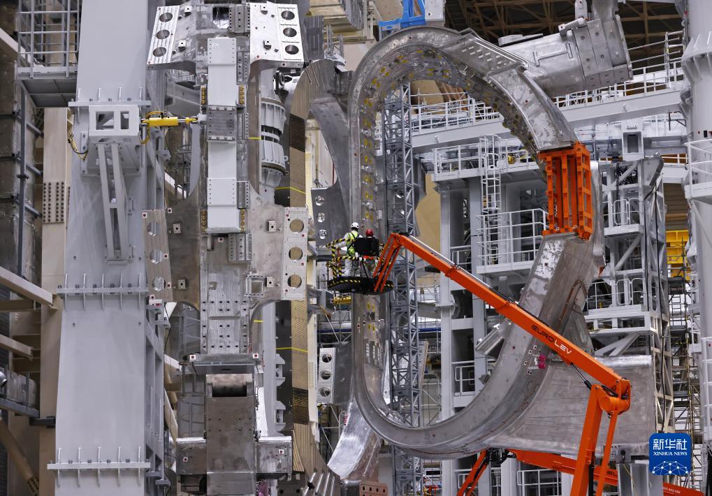 這是11月23日在位于法國圣保羅-萊迪朗斯的國際熱核聚變實(shí)驗反應(yīng)堆(ITER)建設(shè)現(xiàn)場拍攝的安裝中的托卡馬克裝置。新華社記者 高靜 攝