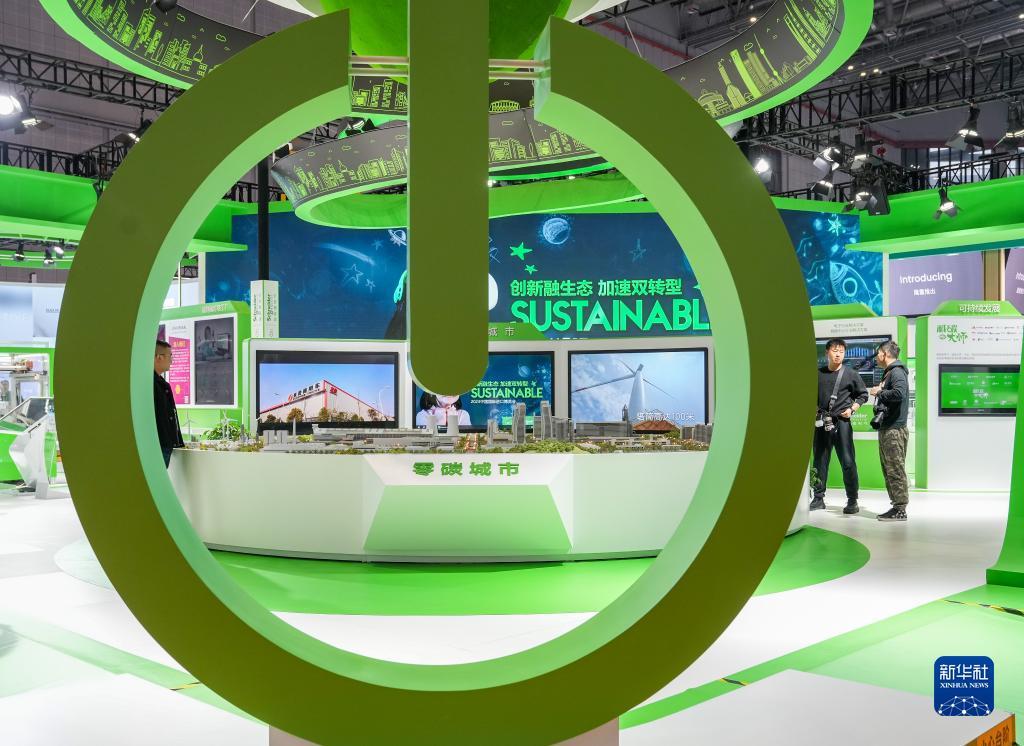 這是第六屆中國國際進口博覽會施耐德電氣展臺展出的“零碳城市”愿景模型(2023年11月9日攝)。新華社記者 丁汀 攝