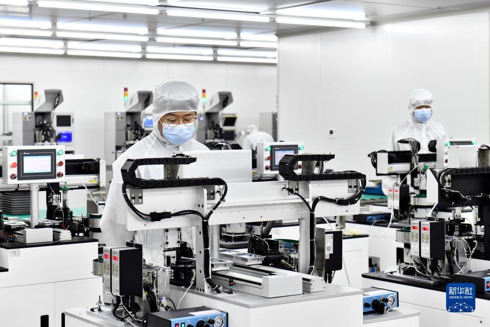 在山東省日照高新技術(shù)產(chǎn)業(yè)開發(fā)區(qū)智慧微電產(chǎn)業(yè)園,工作人員在生產(chǎn)濾波器(2023年6月29日攝)。新華社記者 郭緒雷 攝