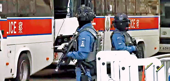 圖:西九龍裁判法院發(fā)生“走犯”事件后,警員荷槍實彈到場搜捕。