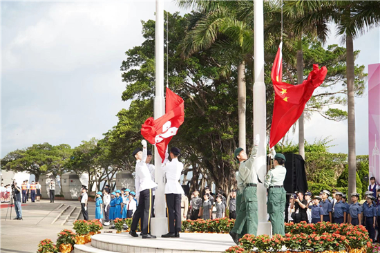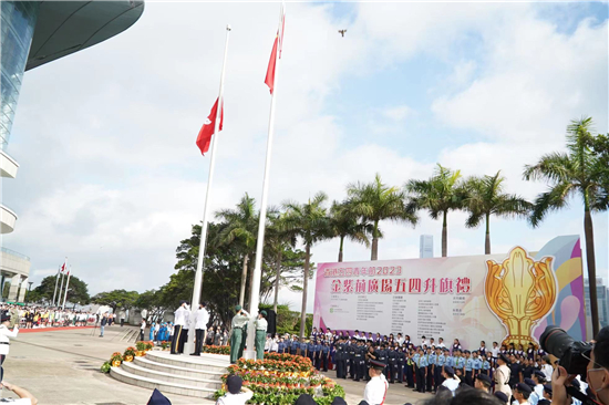 金紫荊廣場舉行五四青年節(jié)升旗禮。(大公文匯全媒體記者麥鈞杰攝)