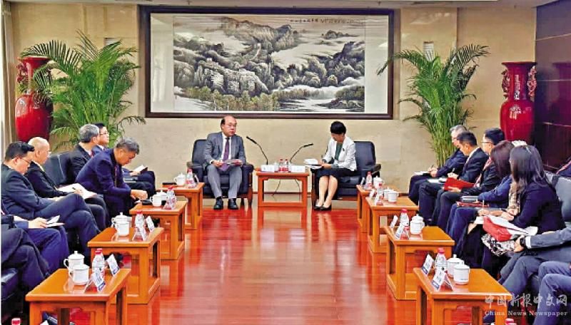 圖:國(guó)務(wù)院港澳辦有關(guān)部門主要負(fù)責(zé)人李國(guó)明會(huì)見訪問團(tuán)一行成員。