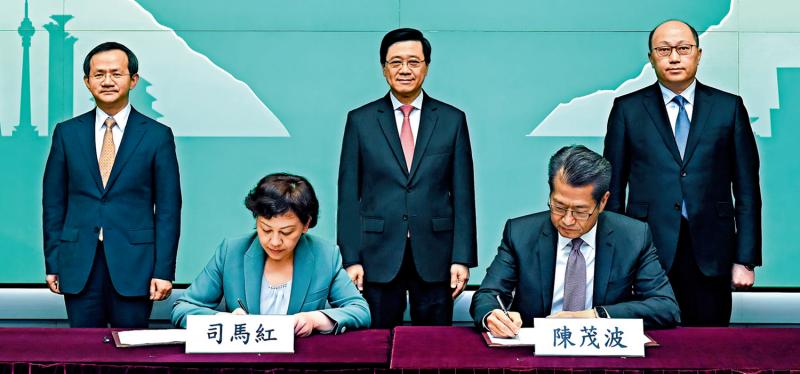 會(huì)后,李家超、殷勇、鄭雁雄共同見(jiàn)證兩地簽署《京港合作會(huì)議第五次會(huì)議備忘錄》以及金融服務(wù)、食品安全、教育及青年發(fā)展等四份協(xié)議。