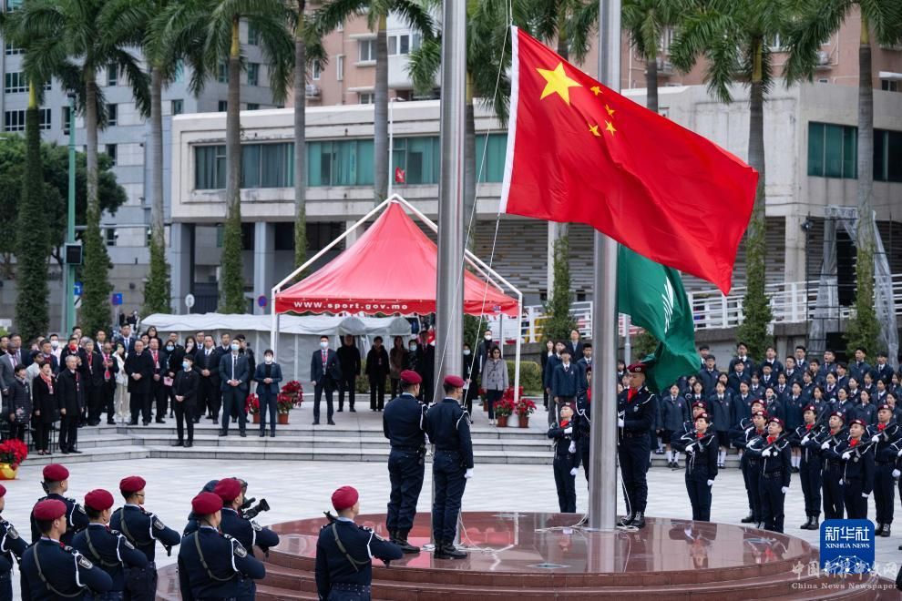 12月20日,澳門特區(qū)政府在金蓮花廣場舉行升旗儀式,慶祝澳門回歸祖國24周年。