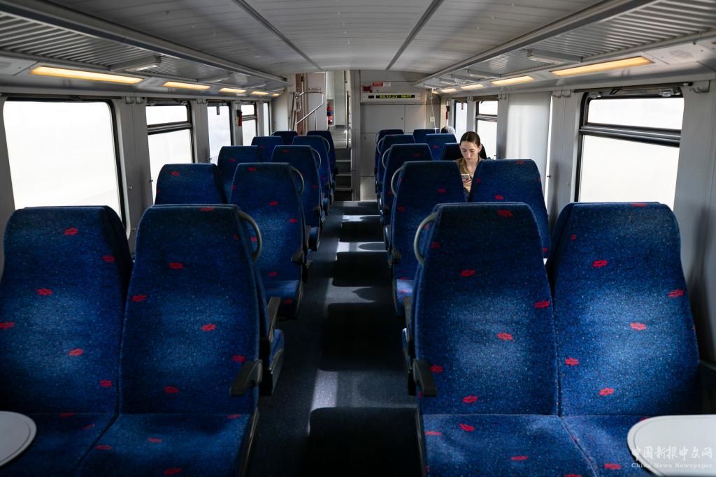 巴以新一輪武裝沖突后的第三天,通往以色列邊境城市阿什凱隆的列車上乘客稀少,多數(shù)為前往前線的軍人。