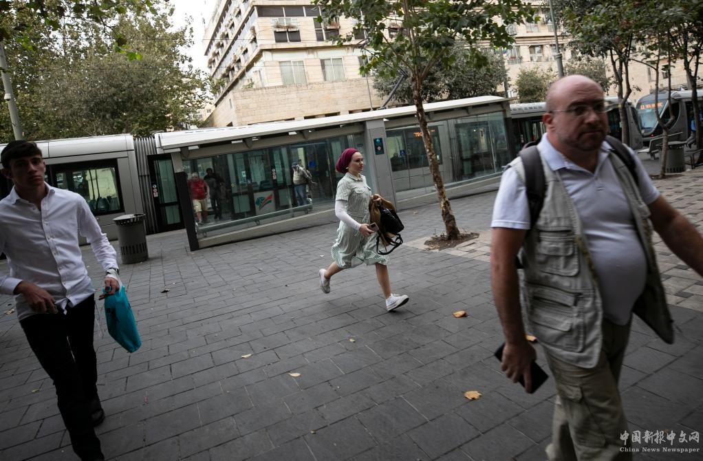巴以新一輪武裝沖突后的第二天,耶路撒冷輕軌仍在運(yùn)營(yíng)。