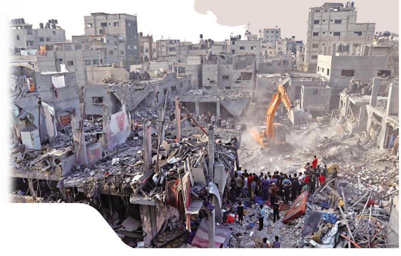 圖:巴勒斯坦人25日在加沙被以色列襲擊現(xiàn)場(chǎng)搜尋傷者。\路透社