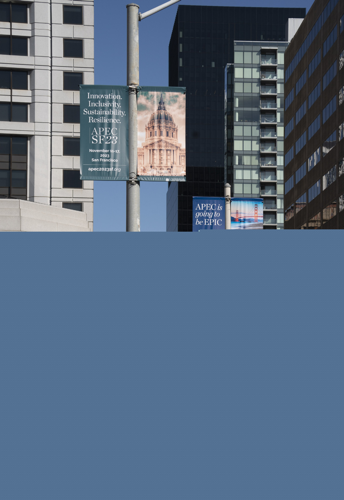 11月7日在美國(guó)舊金山拍攝的亞太經(jīng)合組織會(huì)議場(chǎng)地外的宣傳海報(bào)。新華社發(fā)(李建國(guó)攝)