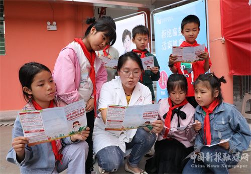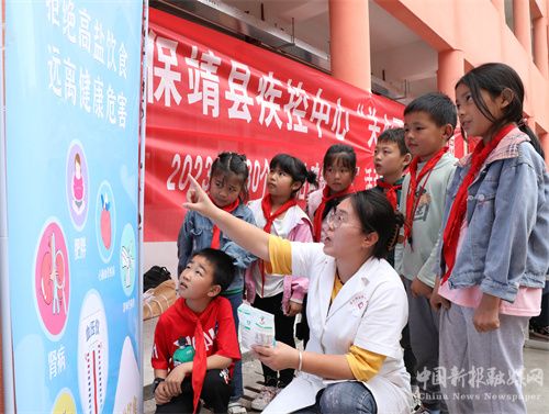5月16日,湖南省保靖縣疾控中心工作人員在清水坪學校給學生講解科學補碘知識。 連日來,該縣疾控中心工作人員與關(guān)工委成員深入中小學校,開展“堅持科學補碘,建設(shè)健康家園”宣傳活動,讓學生了解碘缺乏病防治、科學補碘、識別碘鹽等知識。(俞采華)