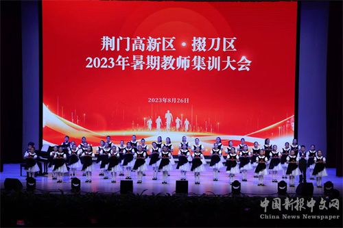 大會在掇刀石小學(xué)養(yǎng)正童聲合唱團(tuán)的同學(xué)們帶來的合唱《你的名字是老師》中拉開帷幕。十里牌小學(xué)及部分學(xué)校音樂教師帶來的舞蹈《青藍(lán)逐夢》,展現(xiàn)了一代又一代教育人匯入掇刀教育的洪流,前浪托舉,后浪奔涌,掇刀教育薪火相傳,未來可期;雅行教聯(lián)體帶來的詩朗誦《九月的贊歌》,展現(xiàn)了掇刀教育人堅(jiān)守初心,牢記使命,立德樹人,以愛育人的高尚情操和昂揚(yáng)向上的精神風(fēng)貌。與會人員觀看了“好老師”微視頻展播、區(qū)級“名師工作室”成果掠影,認(rèn)真聆聽了新教師成長故事分享,新教師代表上臺進(jìn)行教師誓詞宣誓。