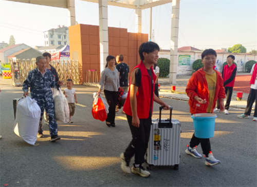 校園內(nèi)到處可見教師和學(xué)生志愿者,學(xué)校大門前的引導(dǎo)、主干道上行李的跟車、宿舍樓下和上樓過程中行李的搬運……他們熱情地為新生和家長介紹校園并提供幫助,用行動彰顯出李市中學(xué)師生的責任與擔當。