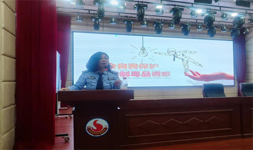 活動中,蒸湘區(qū)禁毒大隊(duì)民警廖艾平做禁毒教育講座。她以視頻方式分享了鮮活的禁毒案例,用ppt圖文并茂的向廣大師生介紹了毒品的種類、毒品的危害、與毒品有關(guān)的法律法規(guī)以及如何防范、拒絕毒品。她從日常生活、學(xué)習(xí)、社會交往等方面深入分析學(xué)生可能吸毒的原因,引導(dǎo)教師與學(xué)生們對毒品預(yù)防有了系統(tǒng)全面的認(rèn)識,切實(shí)讓全體師生深刻認(rèn)識禁毒工作的重要性。
