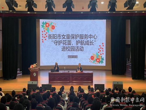中國新報湖南訊(李玉婕 吳瓊)為幫助學生提高青春期認知及應對能力,促使青春期的女生了解自我,樹立自我保護意識,確保身心健康成長,2023年11月15日晚上,高新成章實驗學校特邀請衡陽市中級人民法院立案信訪局副局長、衡陽市婦兒工委智庫講師團講師——周玉平老師,在學校圓形報告廳舉行了專題知識講座,高新成章實驗學校八年級全體女生參與活動。