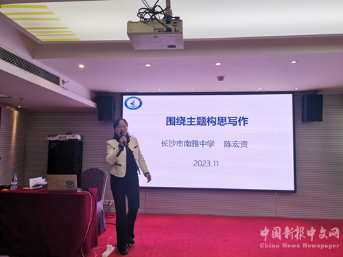 工作室首席名師陳宏資老師分享的講座《圍繞主題構(gòu)思寫作》更是通過深度解讀教材,凝練方法,同時(shí)她鏈接2023年長(zhǎng)沙市中考作文,通過指導(dǎo)作文寫作,為教師提升寫作理論指明方向。