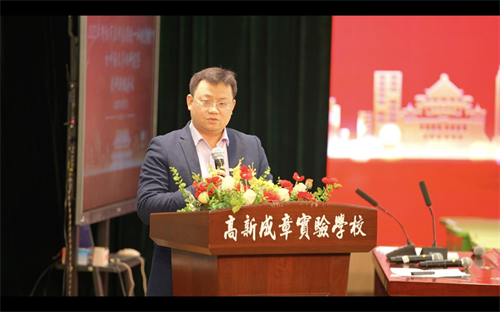 高新成章實(shí)驗(yàn)學(xué)校校長屈揚(yáng)在會上致歡迎辭,對各位領(lǐng)導(dǎo)和老師的到來表示誠摯的歡迎。