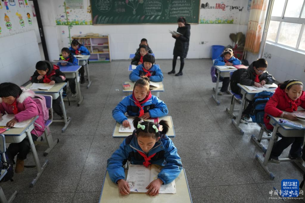 12月25日,積石山縣柳溝鄉(xiāng)陽山希望小學(xué)的學(xué)生在上語文課。