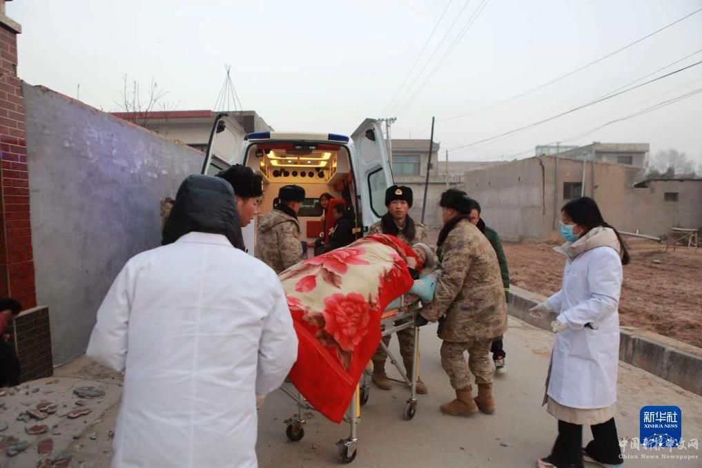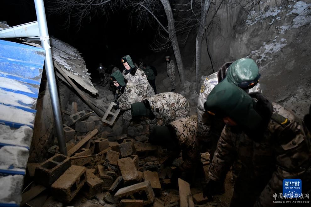 12月19日,西部戰(zhàn)區(qū)第76集團(tuán)軍某旅官兵在甘肅省臨夏回族自治州積石山縣大河家鎮(zhèn)陳家村展開救援。 新華社發(fā)(徐果 攝)