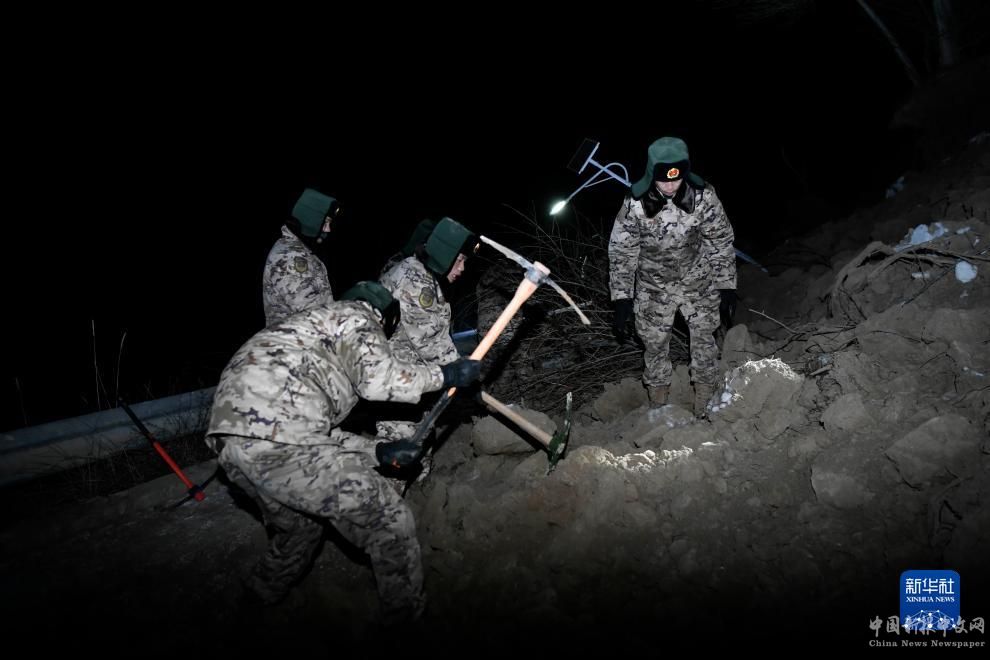 12月19日,西部戰(zhàn)區(qū)第76集團(tuán)軍某旅官兵在甘肅省臨夏回族自治州積石山縣大河家鎮(zhèn)陳家小學(xué)展開救援。 新華社發(fā)(馮彥榮 攝)