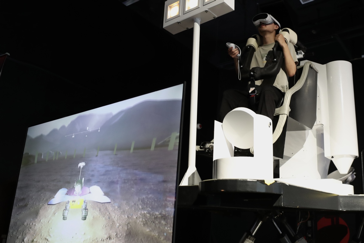 5月30日,2023中國科幻大會科幻產(chǎn)業(yè)新技術(shù)新產(chǎn)品展“漫步未來”展區(qū),觀眾體驗(yàn)基于數(shù)字孿生的火星探測沉浸式體驗(yàn)系統(tǒng)。中國日報(bào)記者 張威 攝