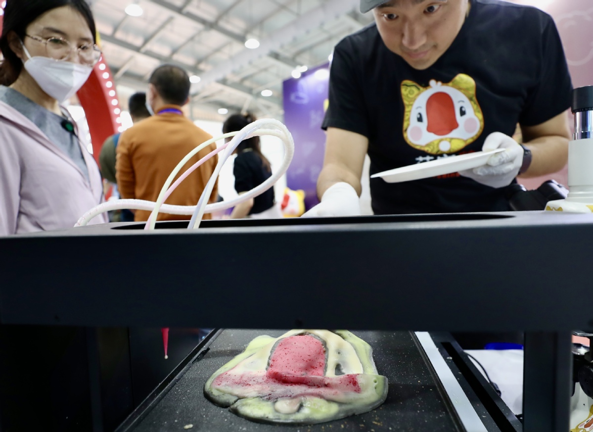 5月30日,2023中國科幻大會北京科幻嘉年華“潮幻奇遇季”板塊,觀眾體驗(yàn)3D打印食物。中國日報(bào)記者 張威 攝
