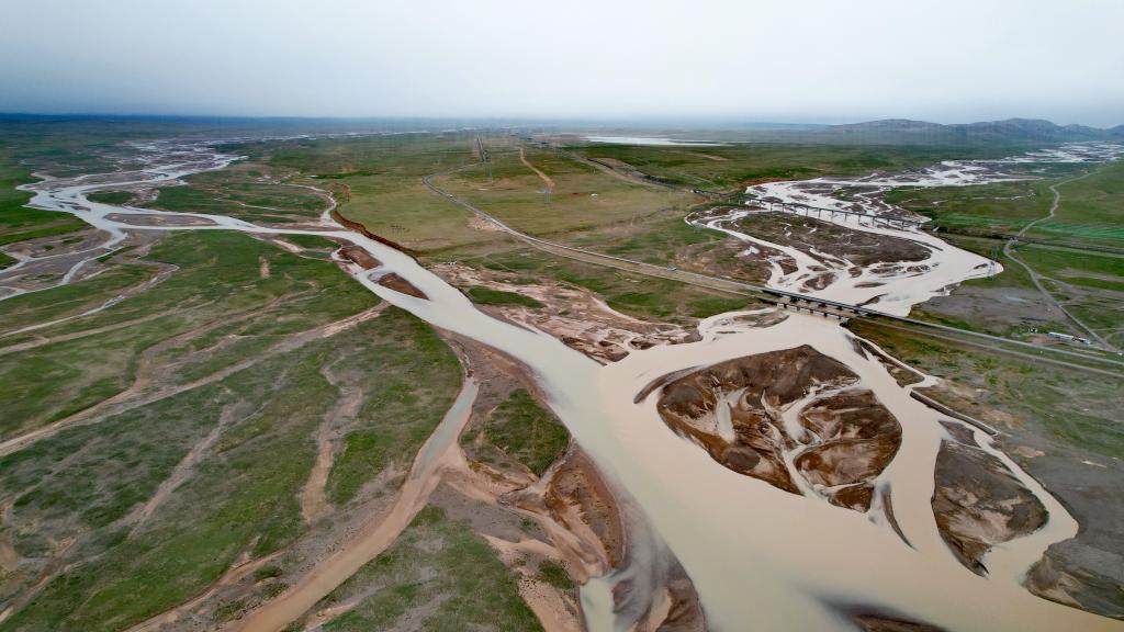記者看到,在沱沱河與當曲匯合處的囊極巴隴,匯合后河流水量增大,辮狀河道寬度超過3千米。青藏鐵路楚瑪爾河大橋之下的楚瑪爾河,暗紅色的河水宛如大地的血管系統(tǒng),流淌在寬闊的辮狀河道里。